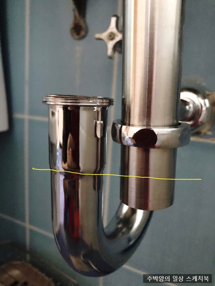 그렇게 해놓으니 물은 안 새서 쓸만했는데 나중엔 물이 안 내려가더라.