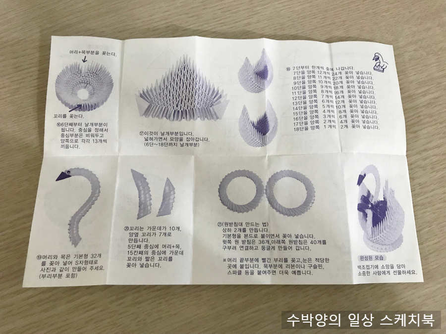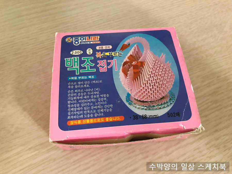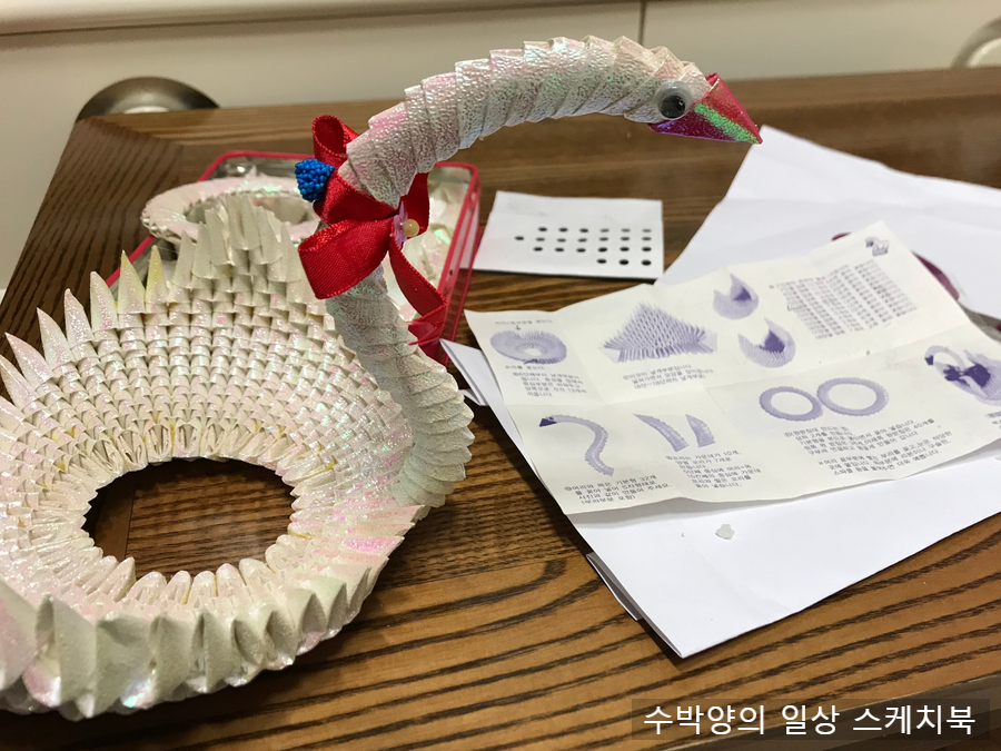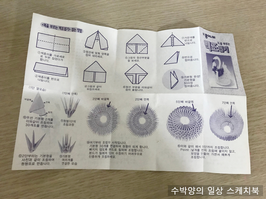 학교 앞 문구점에서 백조 접기 색종이를 사 왔다.