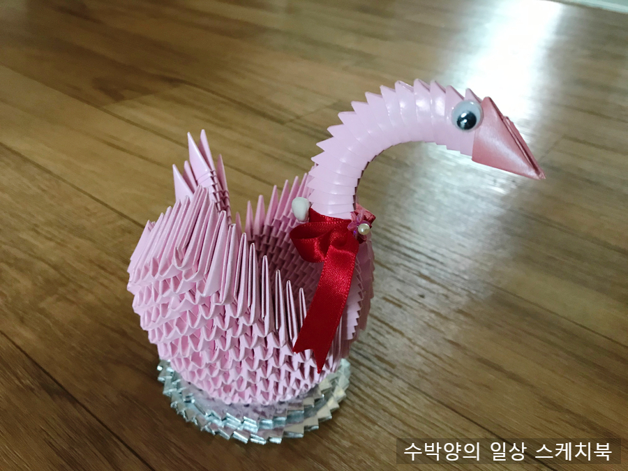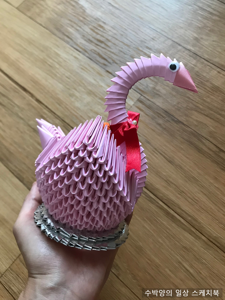 펄이 들어간 색종이가 미끄러운 재질이라 가장 만들기 힘들었다.