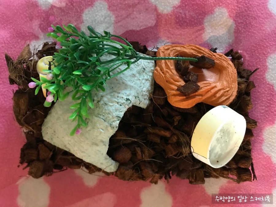 사육장, 은신처, 먹이, 바닥재, 설명서 등 꼭 필요한 구성품들로 되어 있어서 완전 초보인 나에게 안성맞춤이었다.