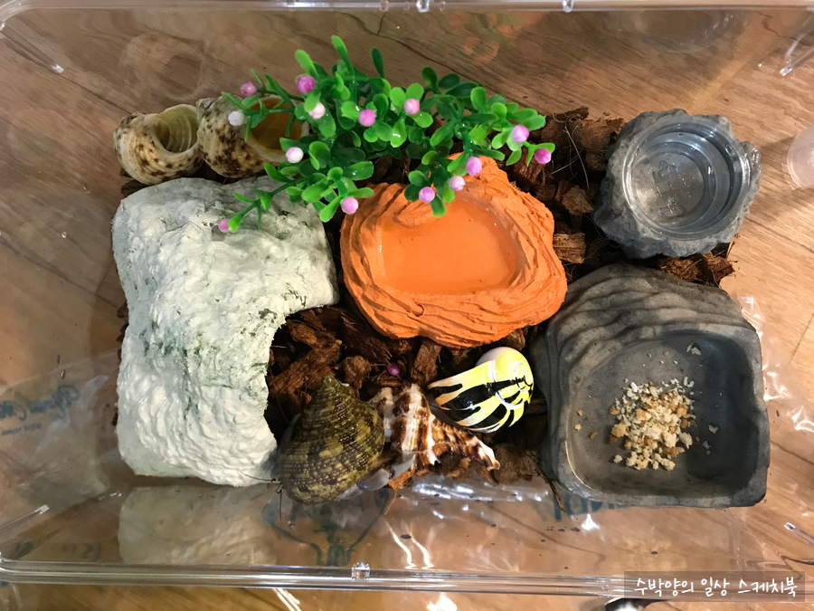 갈아입을 쉘(소라 껍데기)도 구비해두면 좋겠다.