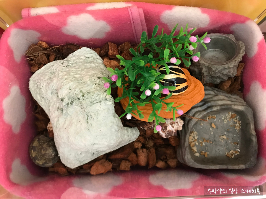 사육장을 담요로 감싸 따뜻한 바닥에 두었고