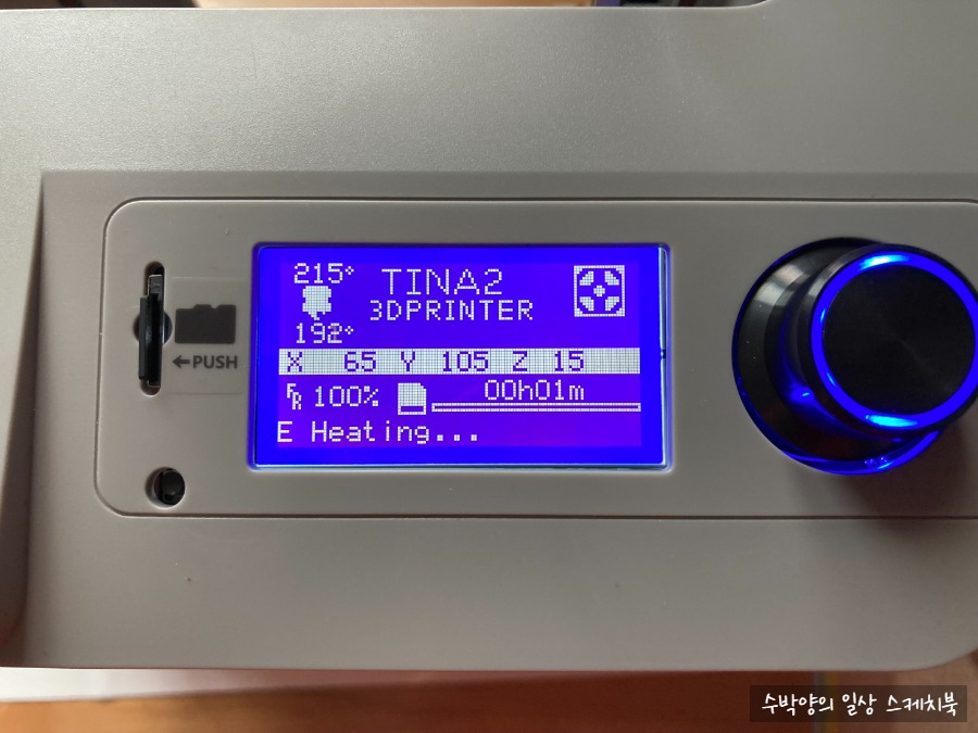 온도가 올라가고 프린터가 작동을 시작한다.