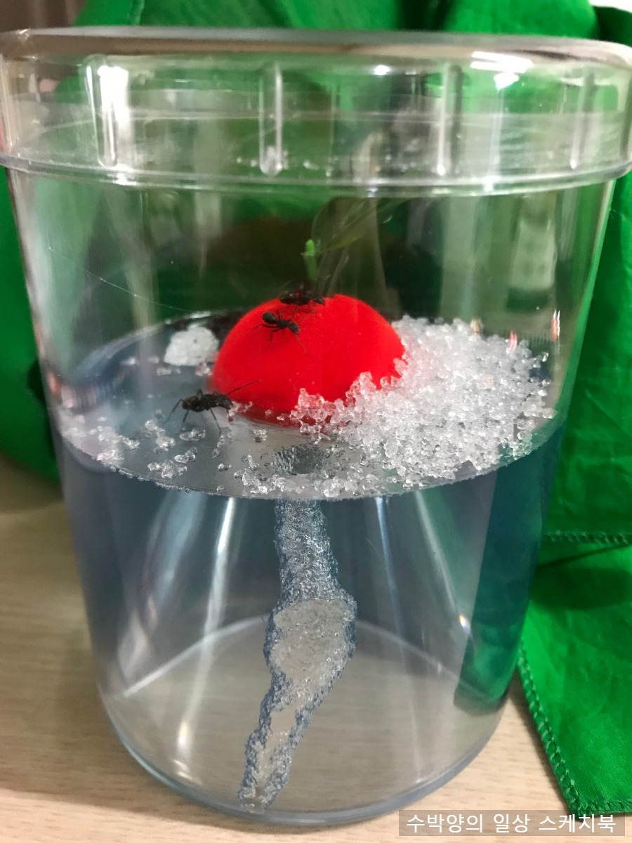 직접 만들었다는 개미집에 학교 운동장에서 잡은 개미들을 넣어와서는 키우겠다고 ㅠㅠ