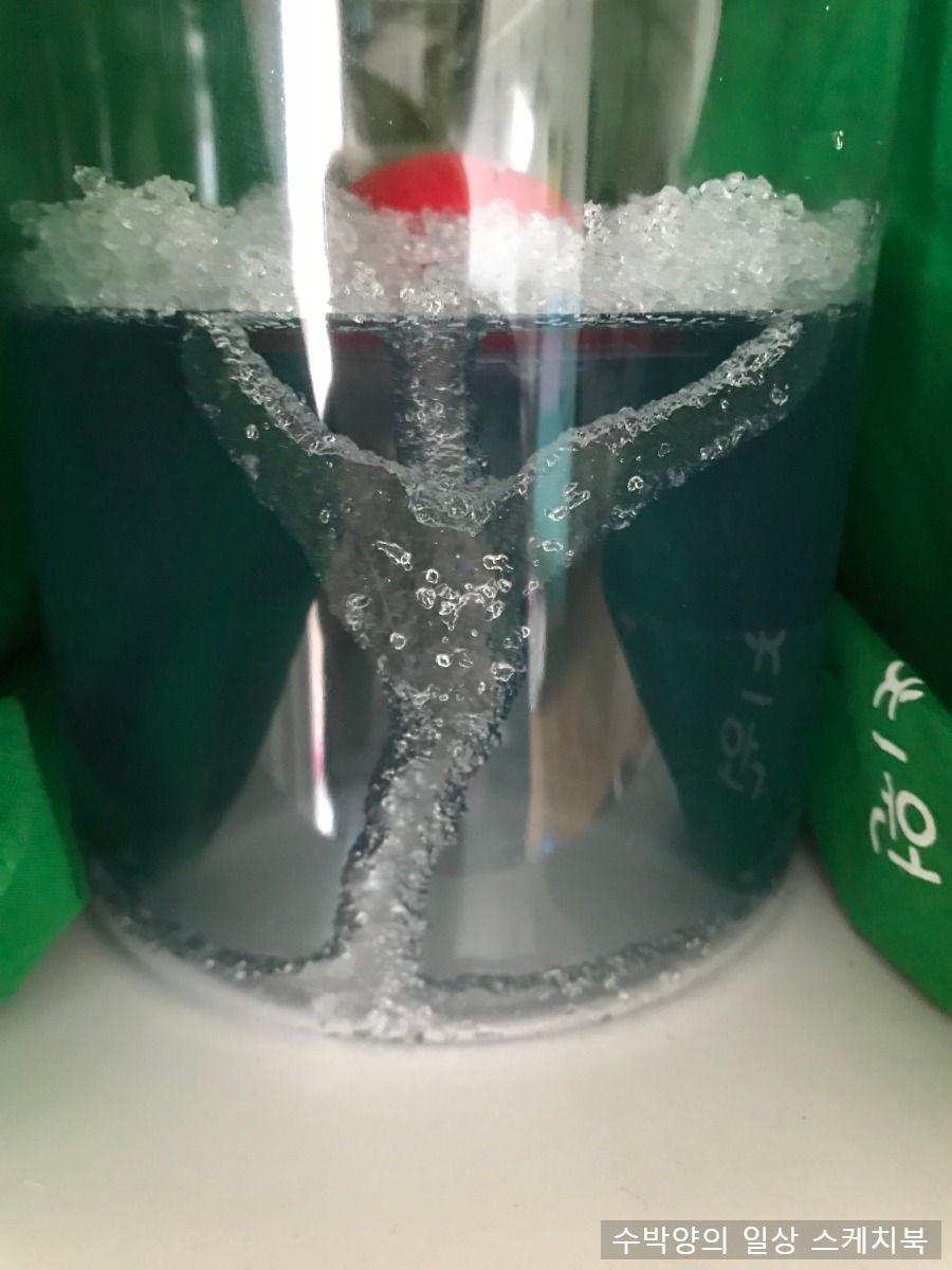 하얀색 알갱이들이 점점 색이 누렇게 변하더니 어느순간 없어졌다.