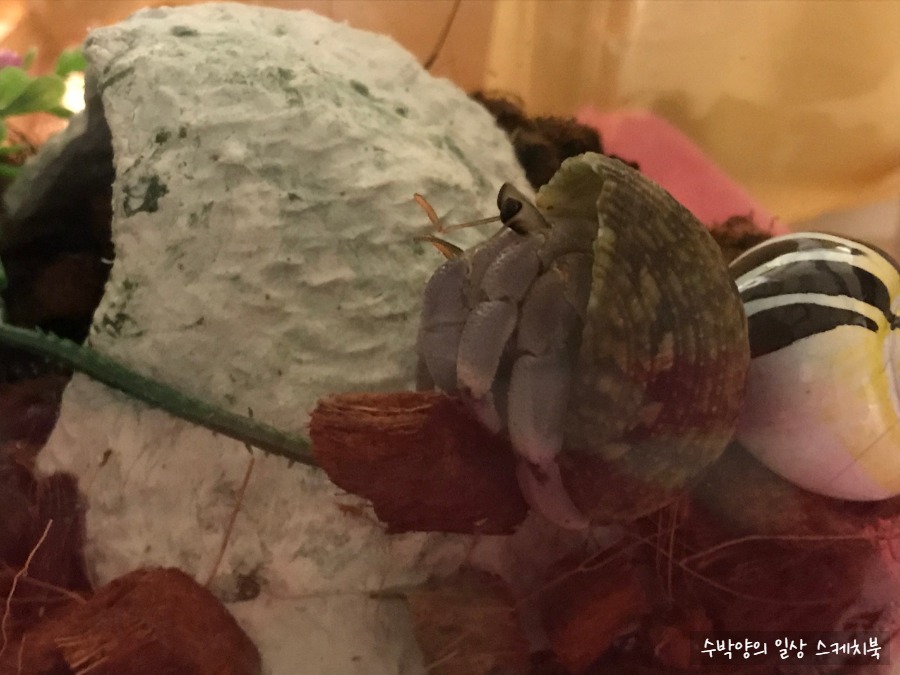 열악한 환경에서도 꿋꿋이 지내는 소라게는 왜 그리도 안쓰럽던지...