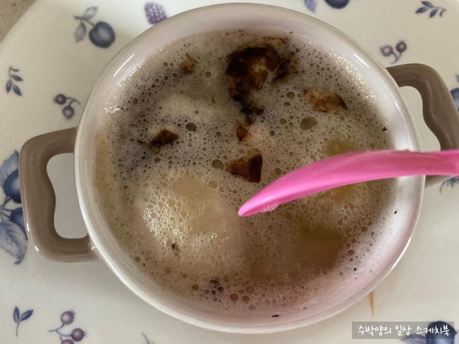 수저로 한 번 뒤집어 줌.