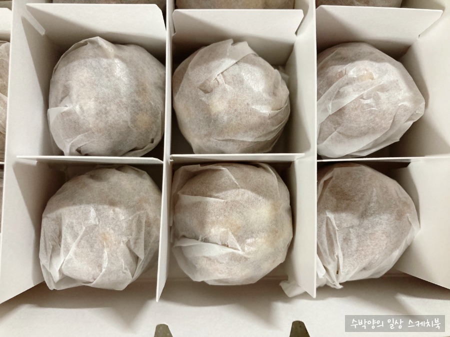 속에는 팥앙금과 큼직한 호두도 들었다.